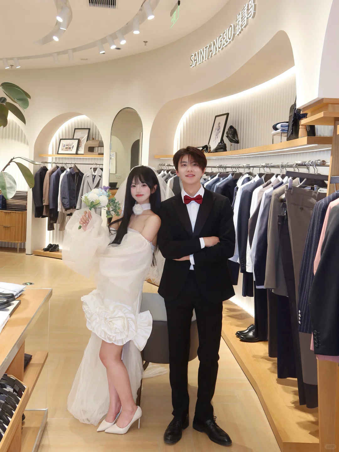 又一起过了一年啦 喜欢的人在身边就是岁岁年年 今年也过得很幸福~ 一起出门逛街拍了好多照片 刚好合肥万象城新店开业来逛逛 婚礼季的美陈好漂亮 随手一拍都很甜蜜 有一说一男人穿上西装完全就是另一种样子 他们家的西装太有质感了 上身以后整个人身材都挺拔了 面料有质感剪裁挺括 男朋友说自己从来没有这么帅过哈哈哈 而且在他们家买西装还有机会抽中意大利游! 如果抽中蜜月旅行就安排上咯 我想 如果没有爱那这一生太长了 我喜欢晴天你恰好是太阳