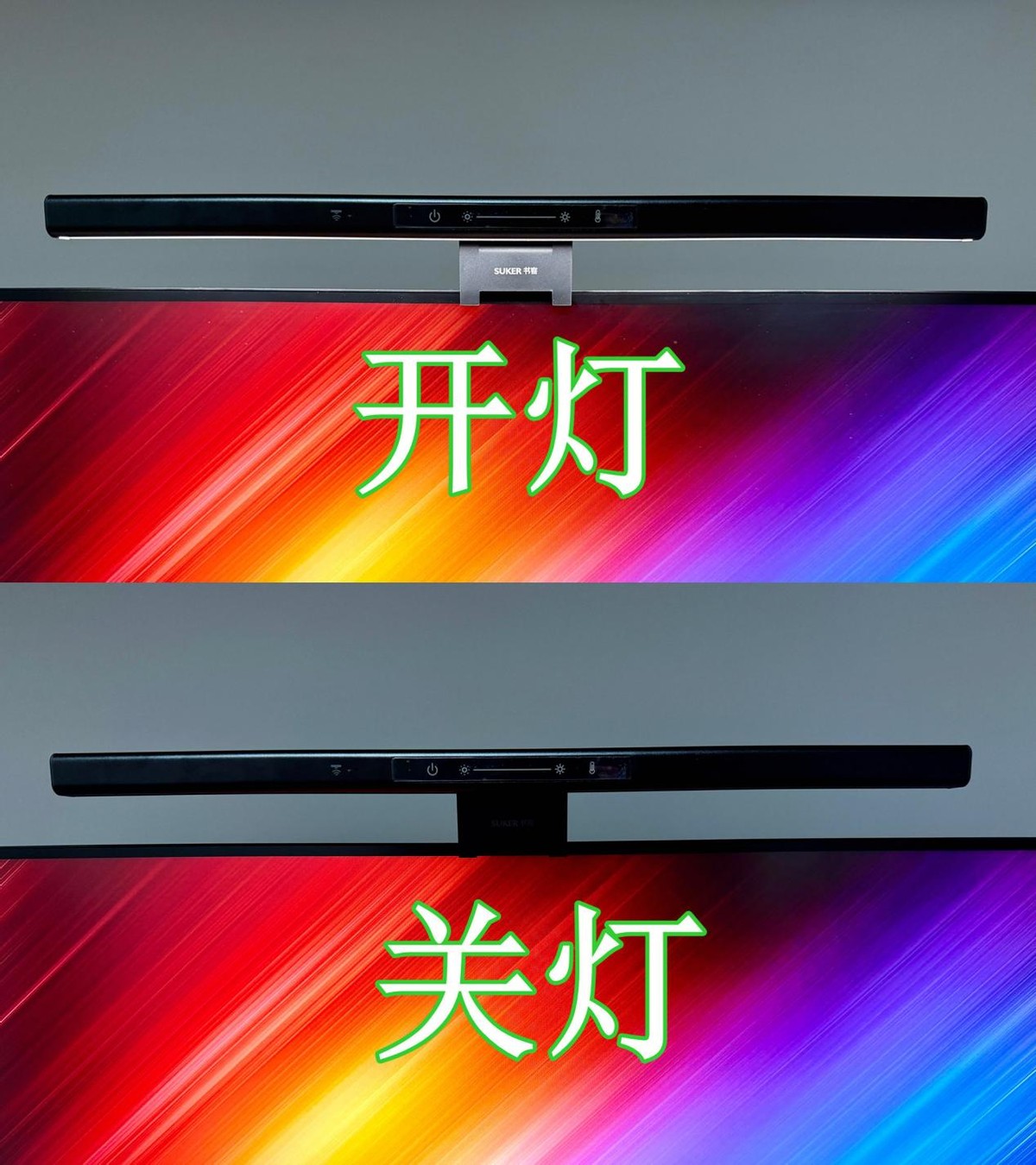 将屏幕灯扣具扳开,卡在屏幕边缘固定即可,非常简单。按键设计在屏幕灯中间,操控更方便视觉效果更佳。