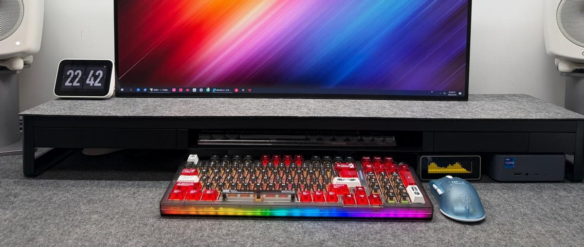 纤细哑光磨砂金属机身可以有效散热,安上也不会显得突兀,简约高级,适配简约、电竞、ins等各种桌面风格。而且不占用桌面空间,颜值与实用性双在线。