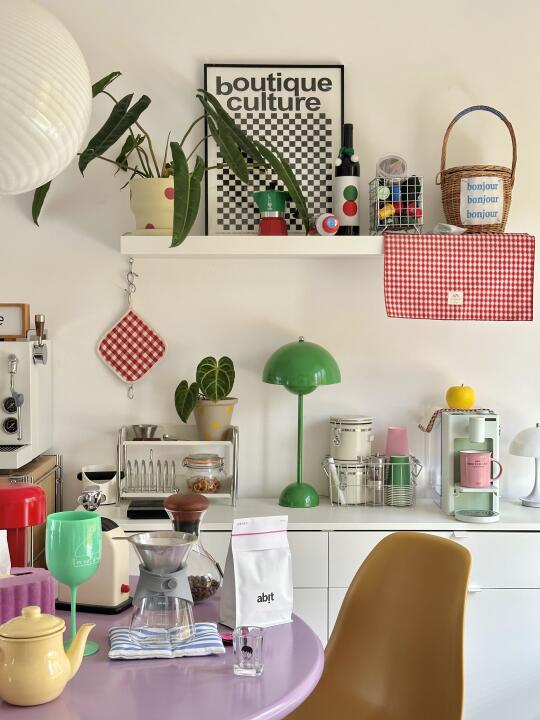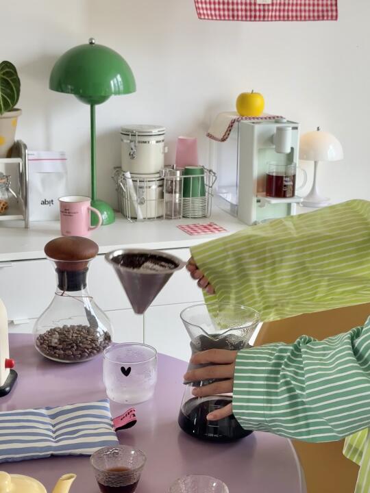 - hi~朋友们~ 我是鱼ZHI酱 一个拥有调色盘的摄影师 欢迎参观我的多巴胺小家 - 水吧台换了好几次 每一次都是当下的zui爱 现在咖啡柜跟水吧柜分开使用 便捷又耐看 也多了更多储物空间 喜欢💛💛 - 买了新的咖啡豆 新的即热式饮水机 迫不及待分享给你们 - 永远在搬搬抬抬 在布置家居中体验生活的新鲜感 按照当下的心情 摆上自己喜欢的宝贝 以及种满各种神奇的植物 太幸福啦 ;-) -