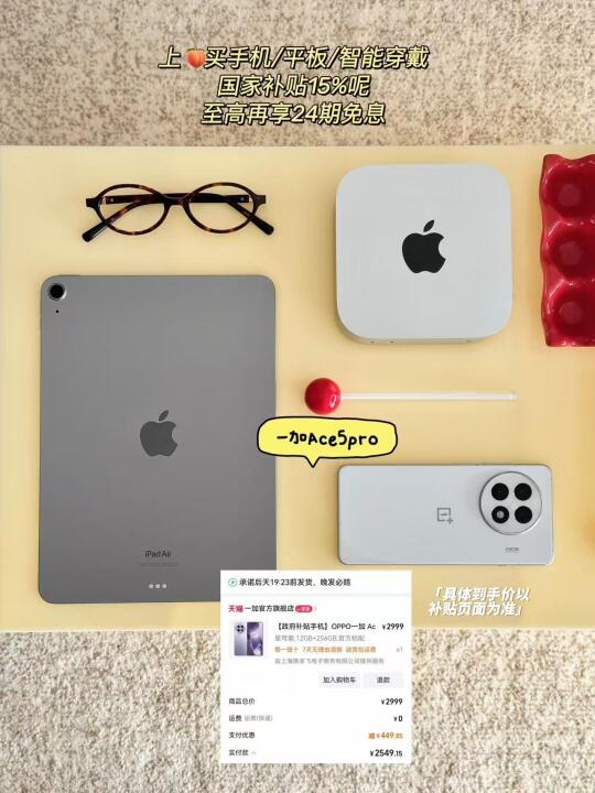 还趁着淘宝国补的活动买了ipad MacMini跟手机