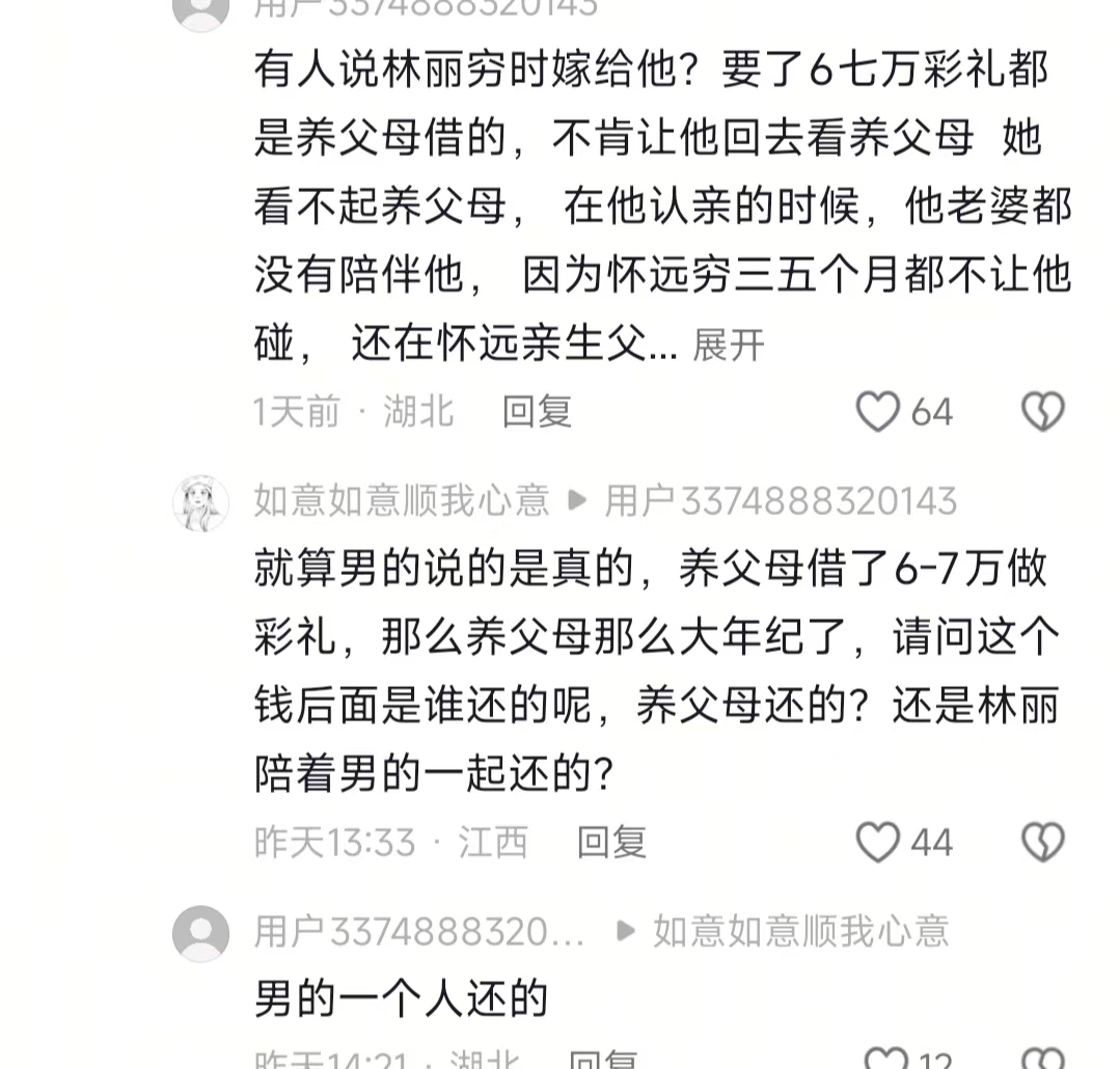 家人们谁懂啊!这两天刷厉怀远和林丽的瓜,我真的绷不住了!本来以为是失散多年认亲圆满的暖心爽文,结果硬生生演成夫妻反目、一地鸡毛的狗血大戏,说真的,我越看越闹挺,这事儿离谱程度,连电视剧都不敢这么写!