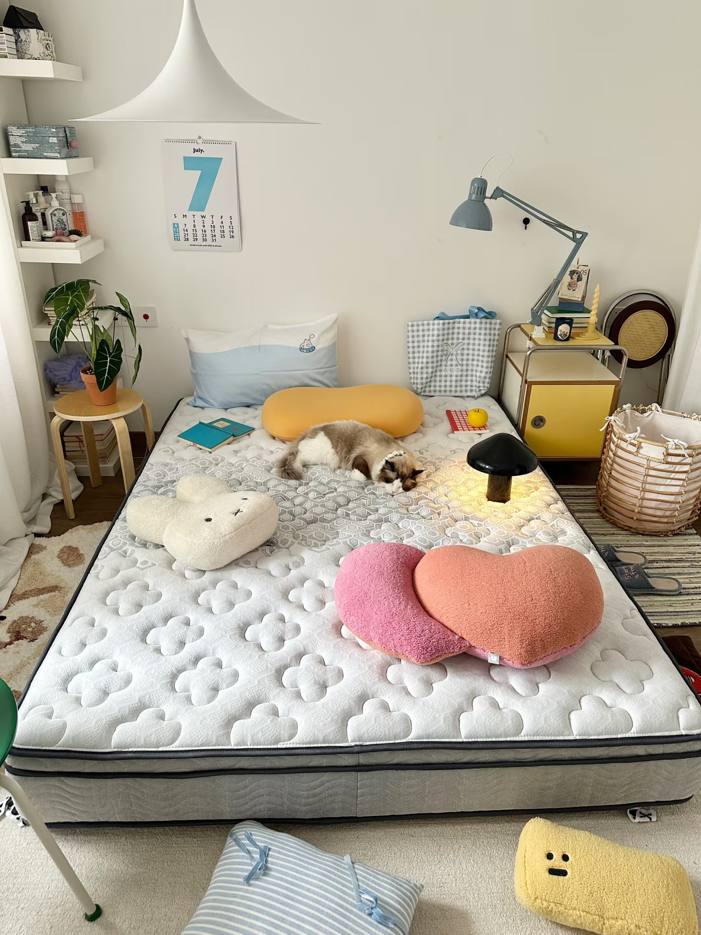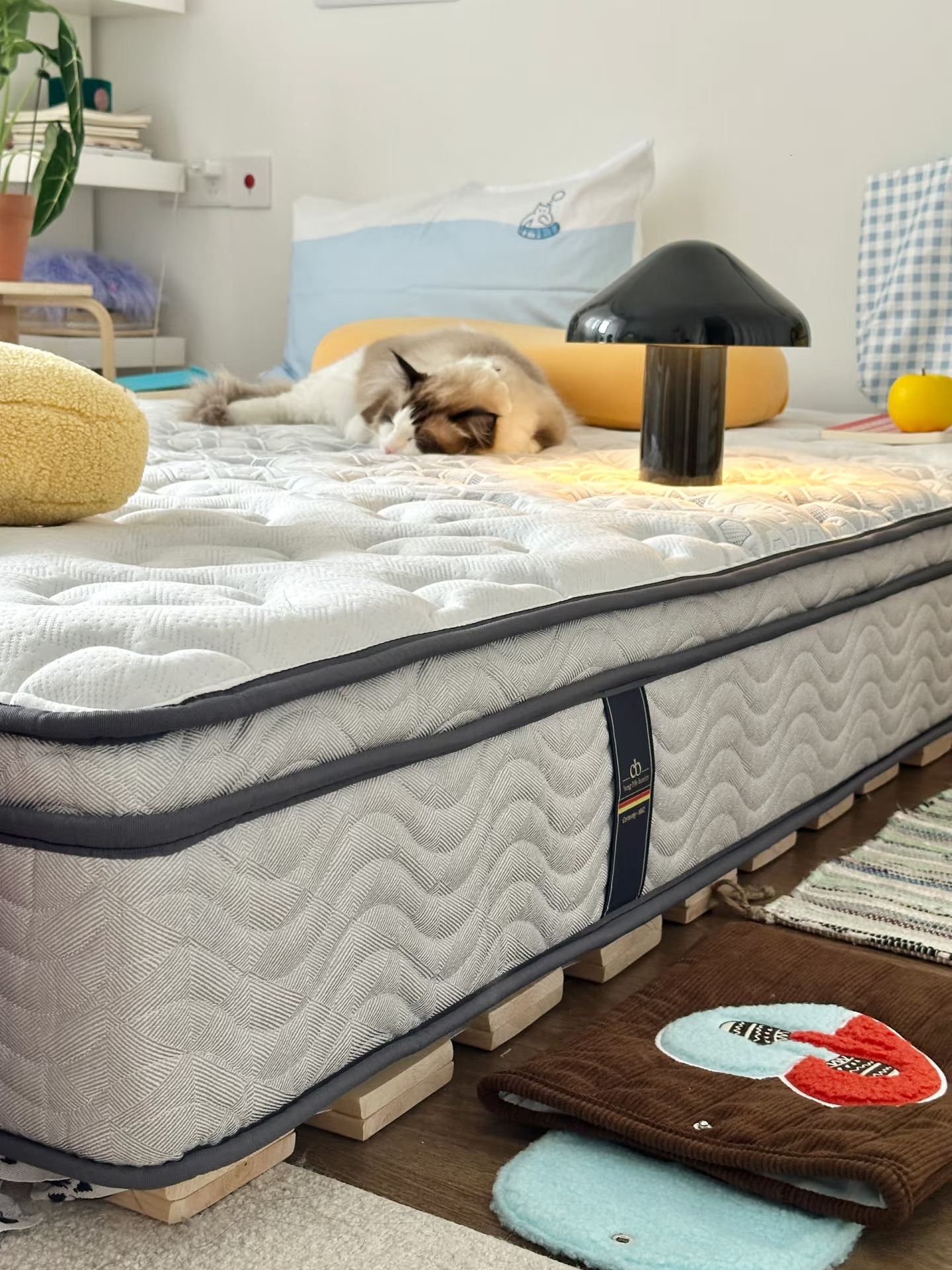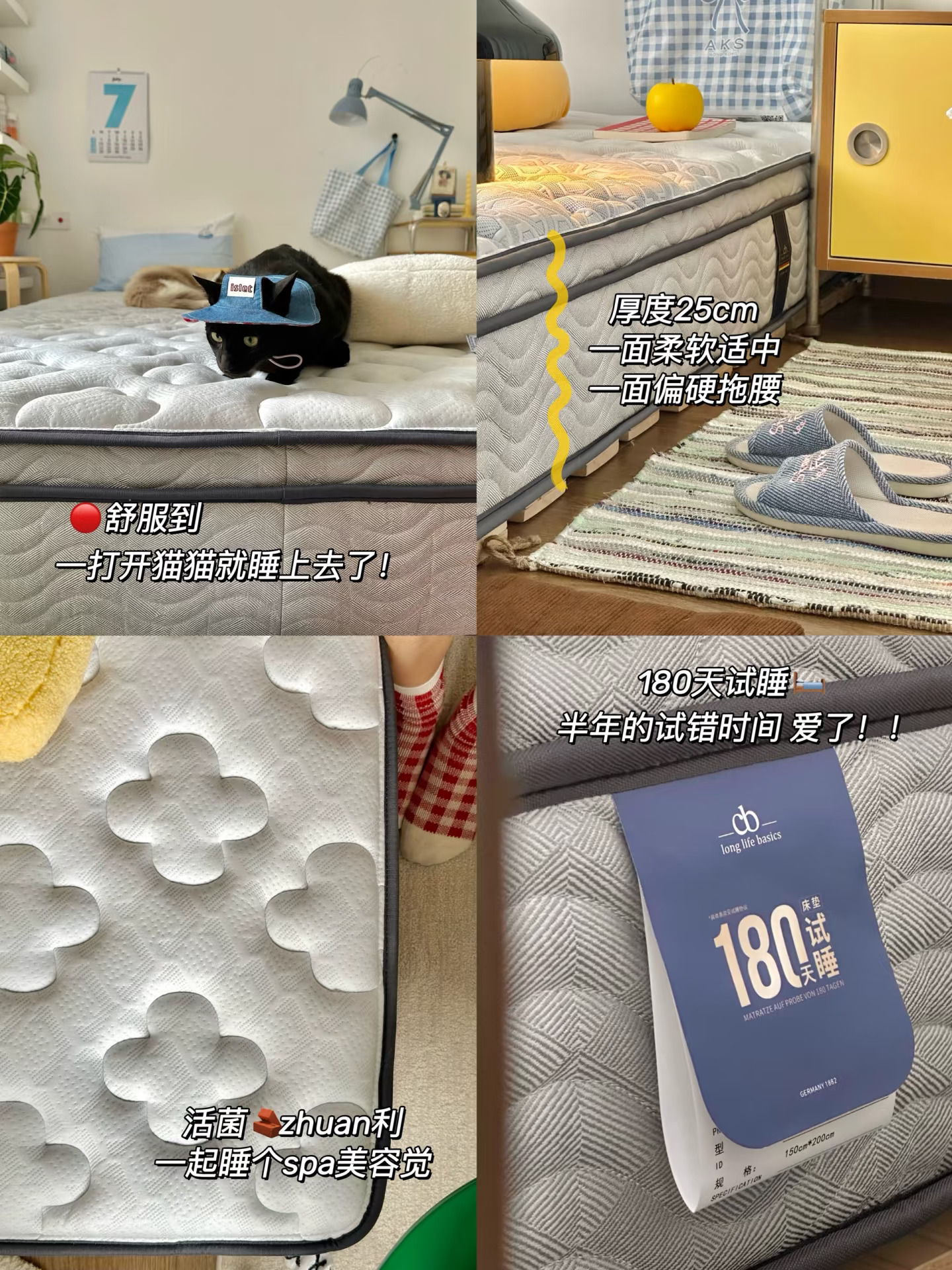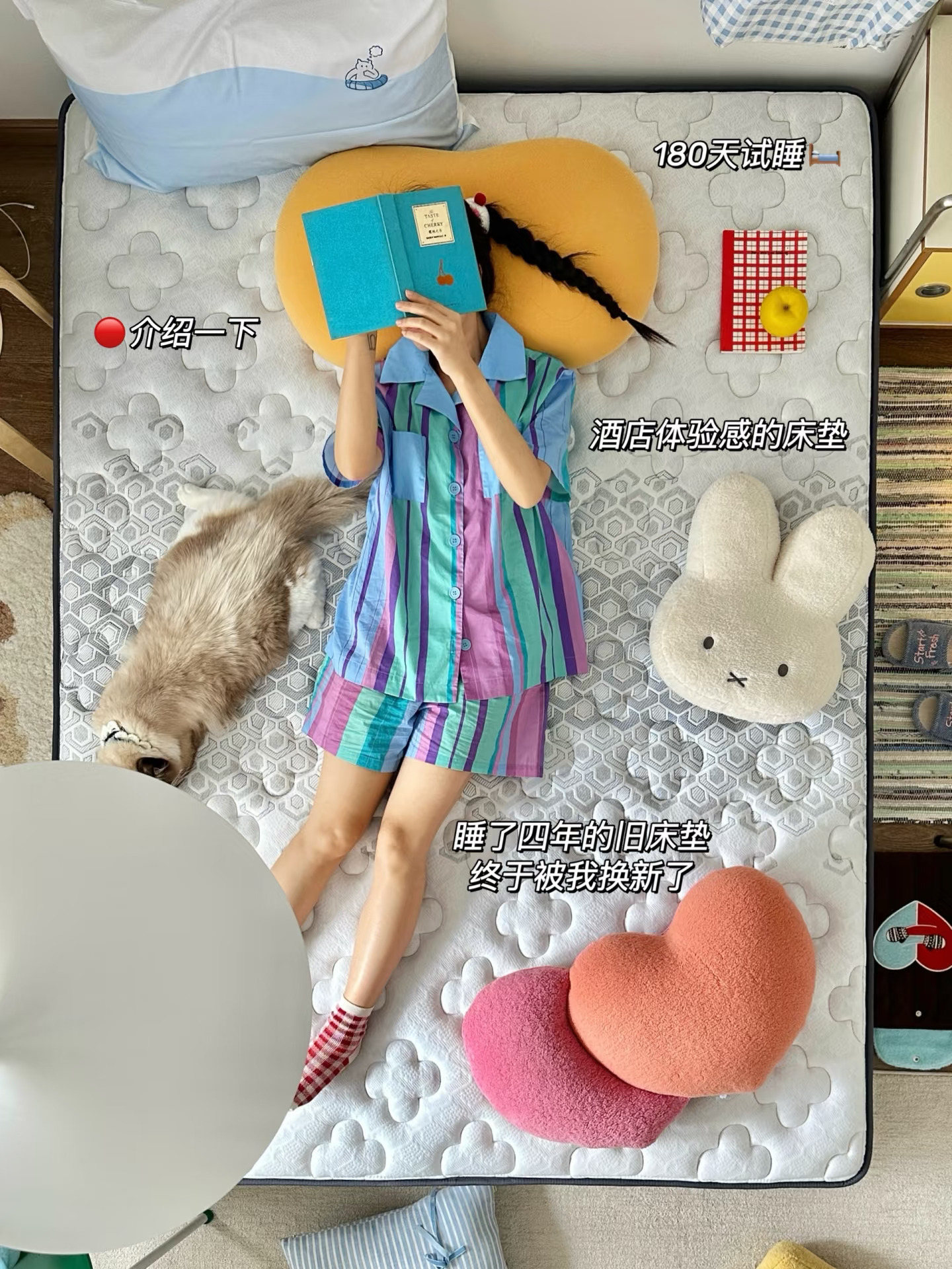 - hi~朋友们~ 我是鱼ZHI酱 一个拥有调色盘的摄影师 欢迎参观这个 靠软装布置的精装房🏠 - 今天的卧室是蓝色系的🩵 不砸不改靠软装布置也能搭出氛围感 给租房党姐妹一些布置灵感 没有标准的理想家装 每个人都不一样 把自己着迷的一切搬进这个空间 就是家的模样🏠🧺🧸 - 旧床睡了四年终于换新床垫噜 腰痛党不能睡太软的床 挑来挑去选了朗乐福 180天试睡体验 可以给我尽情测试 我这款是双面款 正面柔软 反面偏硬 满足我软床硬床交换睡觉的想法 好啦~ 等我睡一段时间再来汇报 -