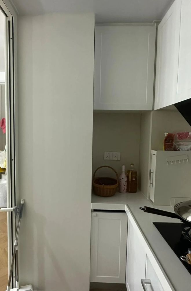 可还是觉得当初应该在这里做一组储物高柜,一是冰箱上方空间被完全浪费了;二是厨房物品太多了,尤其是小家电,每次用的时候,都要倒腾来倒腾去,那叫一个麻烦。