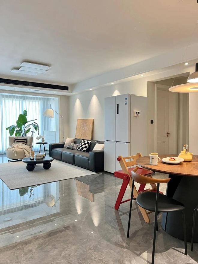 另外,对于“开门见厅”户型来说,沙发旁边放个冰箱,还一定程度上起到了隔断的作用。