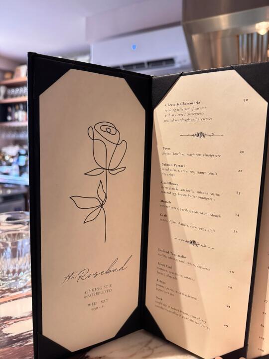 【 The Rosebud 】开在非常不起眼的小街上,门头也非常的不起眼,但是走进去真的是小而全的紧致法式装修,墙壁上的插花也是以花束💐和花猫为主,菜单也是以玫瑰花🌹为主,整个氛围充满着小浪漫💕