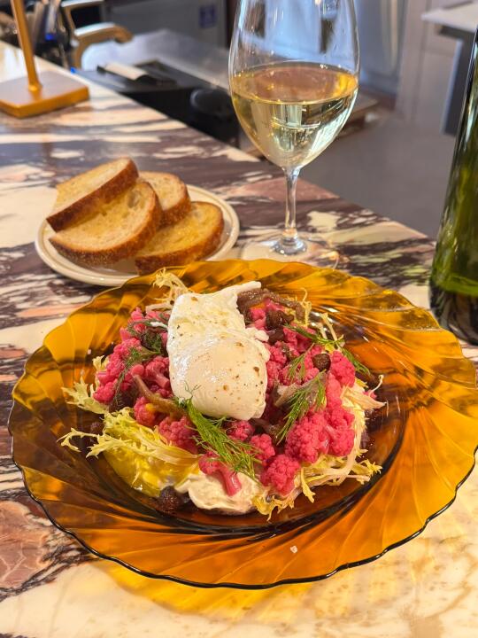 品尝的每一道菜都是有小惊喜的,看着经典,但是摆盘和菜品味道的搭配都看出来了主厨的用心,我们专门选了bar table的桌子,可以看到厨师亲手烹饪的过程,整个用餐体验下来超过我们走进去时候的心情,会推荐给大家,菜品种类不多,性价比也很好👌