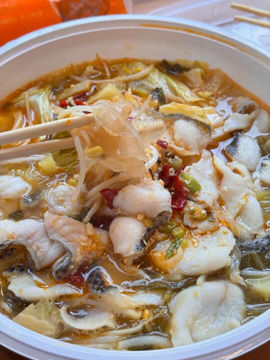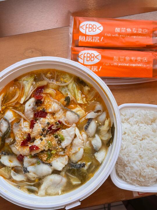 【 Fish Buy Buy 鱼摆摆 】正好去Shu cake买玉米🌽蛋挞,没想到旁边正好有一家可以外卖的酸菜鱼店,看到老外也会买了吃,很好奇味道如何也买了一份试试!