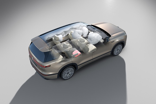 ID. ERA 9X配备了行业领先的三把零重力座椅,其中二排副驾侧座椅打破行业局限,支持动态零重力座椅功能,并通过12L大容量防下潜气囊、集成式安全带、座椅骨架及车身连接点全面强化等多重防护,彻底解决了普通零重力座椅“重舒适、轻安全”的痛点。