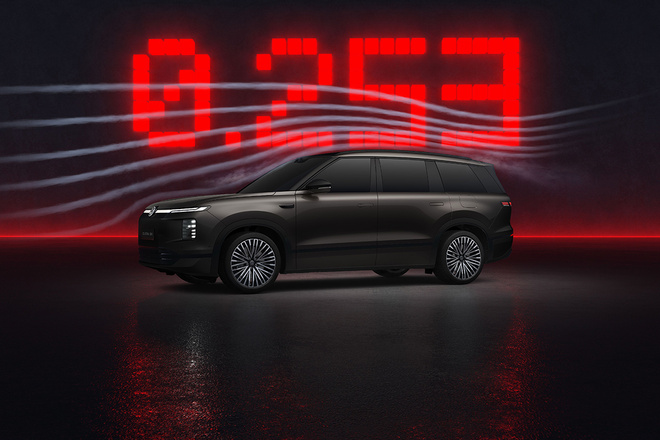 ID. ERA 9X采用0.2mm极薄硅钢片,电驱最高效率达到97.5%。在800V碳化硅平台加持下,前后双电机可瞬间迸发380kW最大功率与660N·m峰值扭矩。值得一提的是,风阻系数低至Cd 0.253,并通过中国汽研“低风阻汽车”认证,在同级大型增程SUV中位居第一,进一步降低能耗、提升续航。