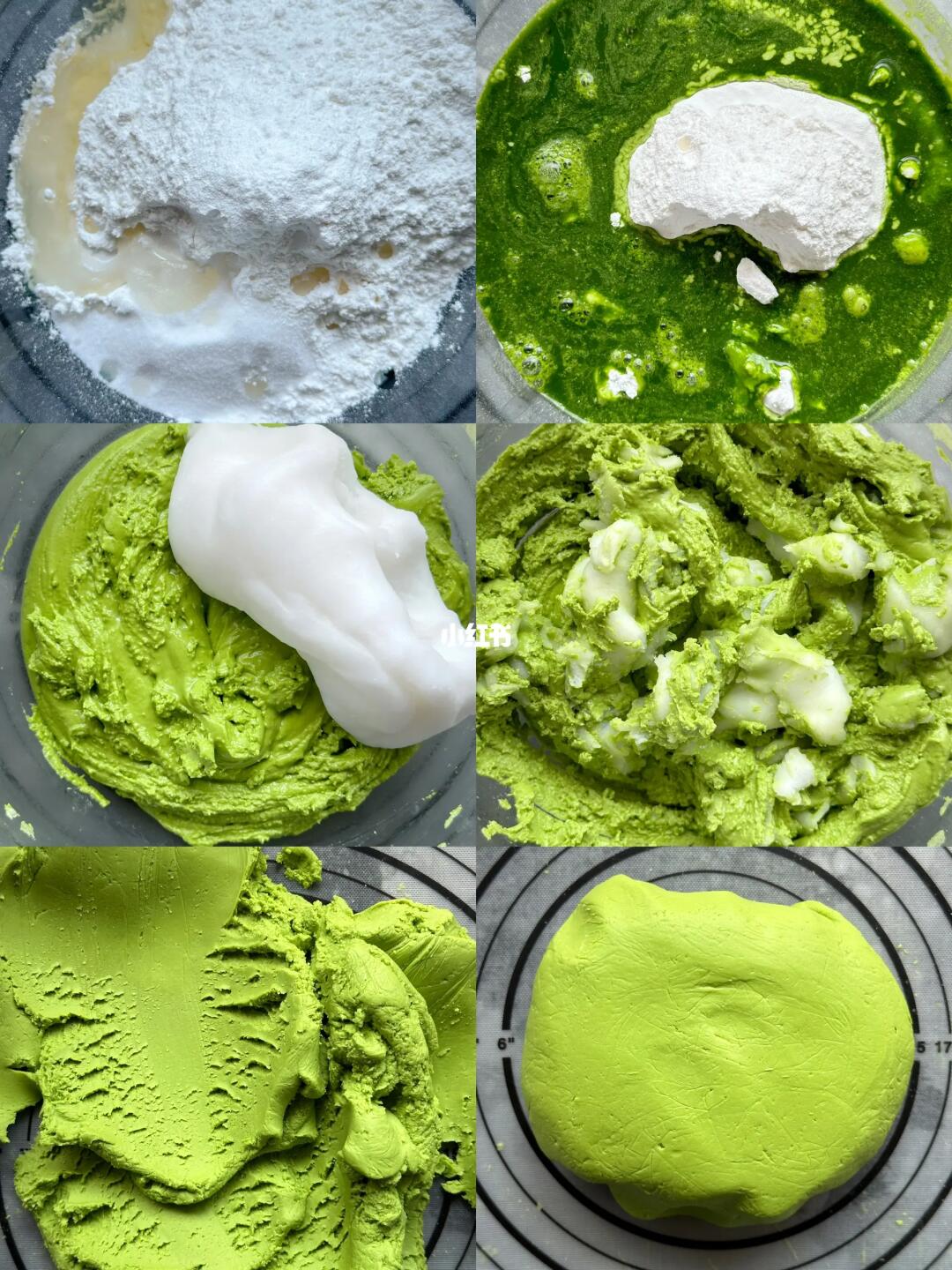 ▪️主面团部分:糯米粉185g,青汁185g,水饴15g,糖10g,玉米油10g
