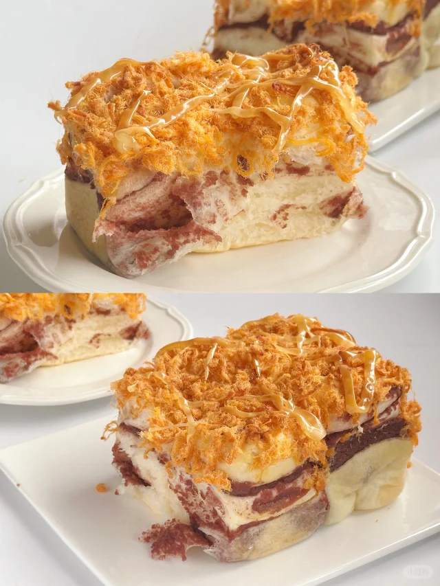 这款面包真的巨好吃!!非常经典的咸甜搭配,烫种有非常好的保湿效果,加入了烫种的面团成品会相对比较耐老化,口感绵密、柔软,并且有弹性。