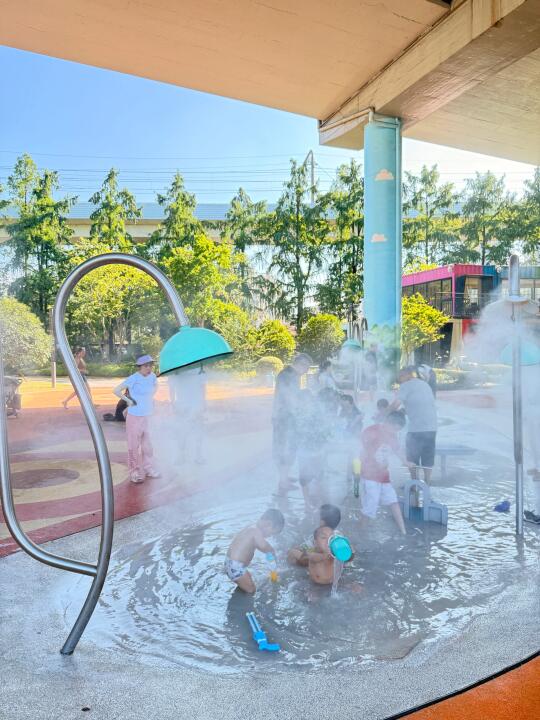 意外发现!藏在高架下的夏日遛娃玩水宝地! 高架桥遮挡,大中午也不怕晒!还喷水雾🚿 玩水区域还有手动压水装置,孩子光脚就能肆意踩水💦旁边还有细腻沙坑、彩虹桥、毛毛虫滑梯🛝 集装箱改造的亲子驿站带母婴室,超贴心。 玩累了还能去对过宜家补充能量⚡️ 免费又好玩的遛娃地,快冲! 📍徐汇区中山西路和漕溪路交叉口