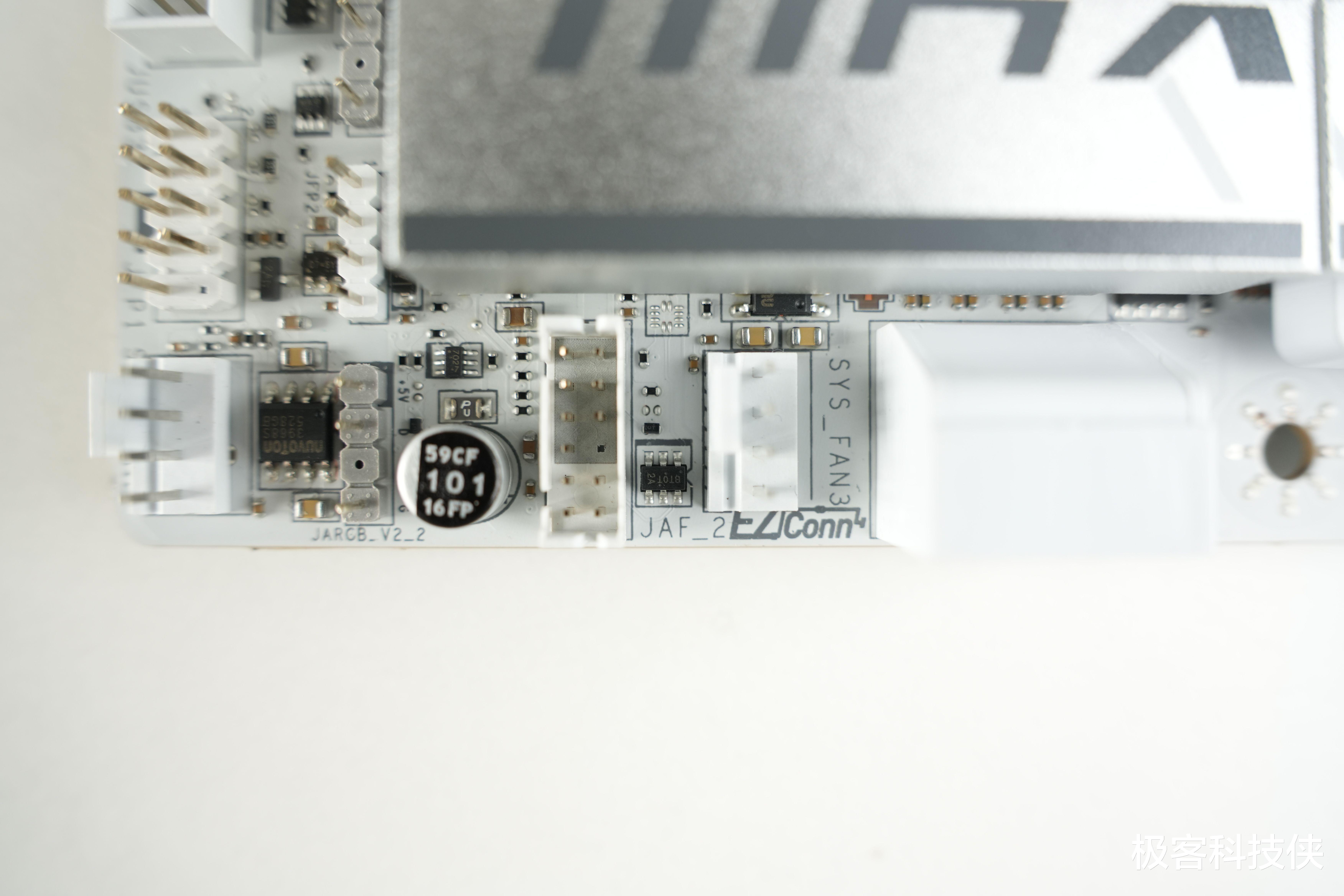值得一提的还有备受用户好评的EZ CONN设计第二代JAF接口在微星MPG B850M EDGE TI MAX WIFI刀锋钛主板上也没有缺失,只不过被放在了主板的右侧底部。