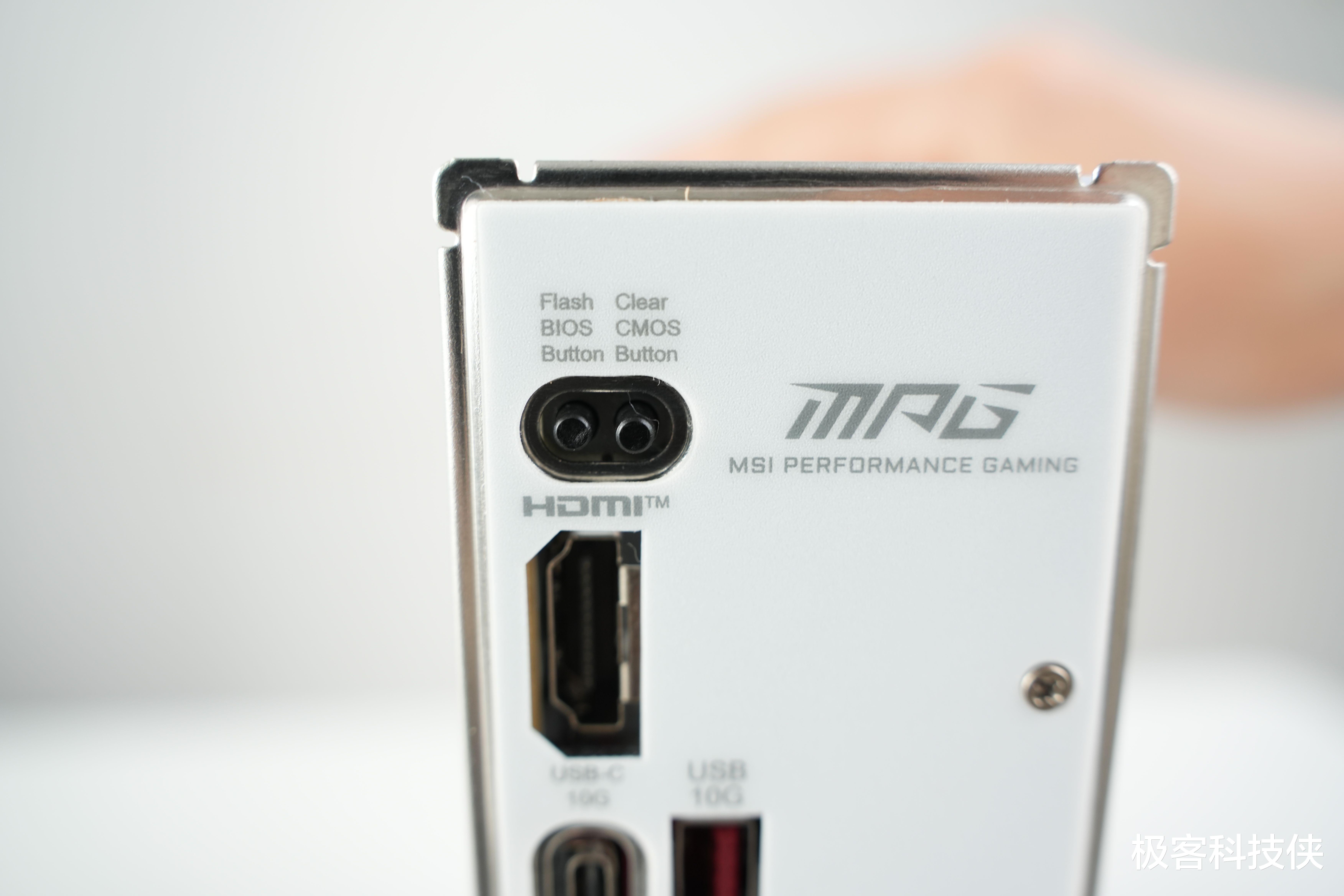 主板的I/O接口方面也是异常丰富,作为高端定位的主板型号,微星MPG B850M EDGE TI MAX WIFI刀锋钛主板的IO面板顶部还设置了2个实体按键,分别是板刷BIOS按钮和清除BIOS按钮,对于玩家来说也非常实用,大幅优化装机与性能调试体验。