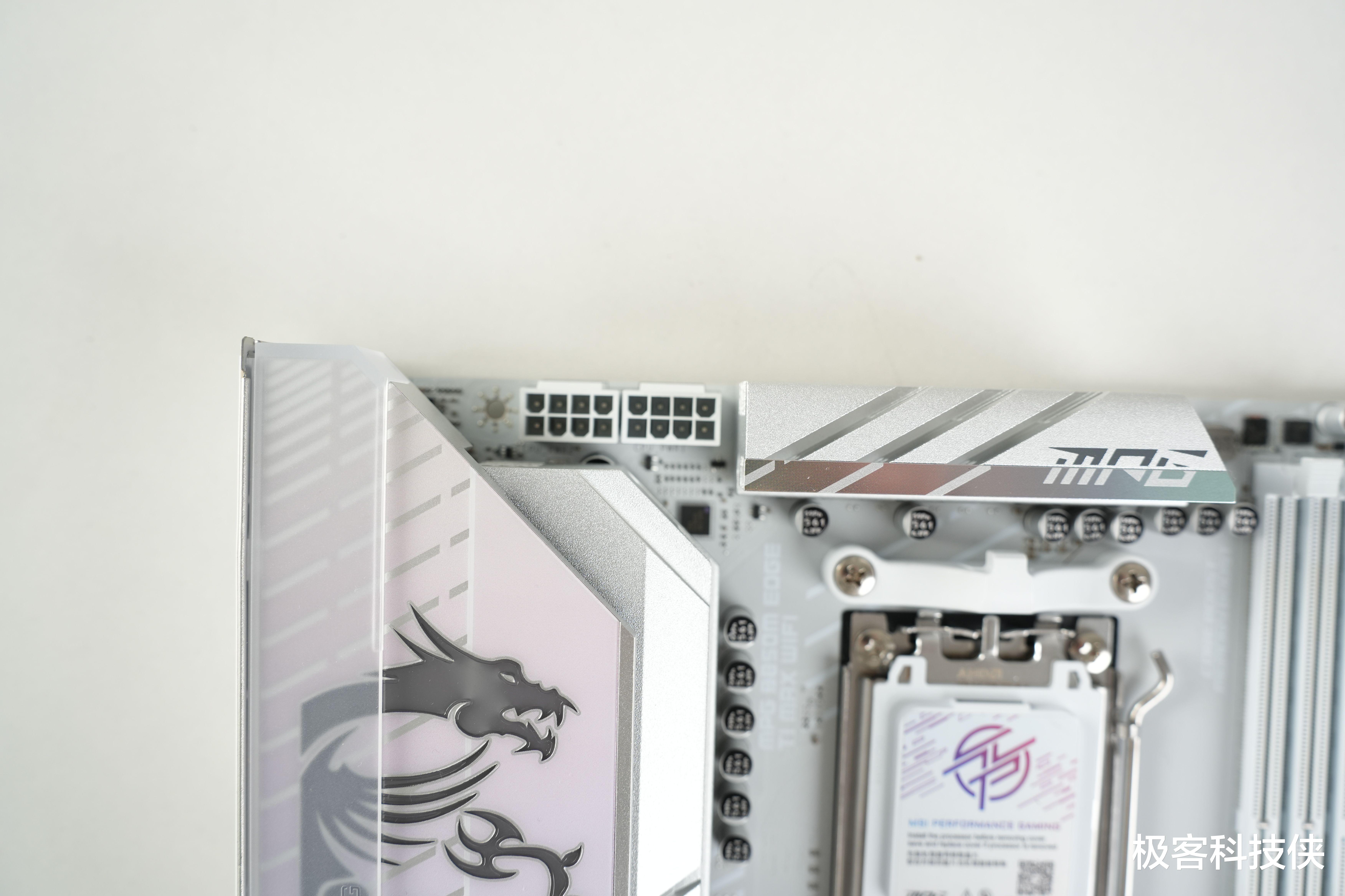 另外,供电电路的金属覆盖件上设计了微星经典的龙标logo,视觉体验拉满。