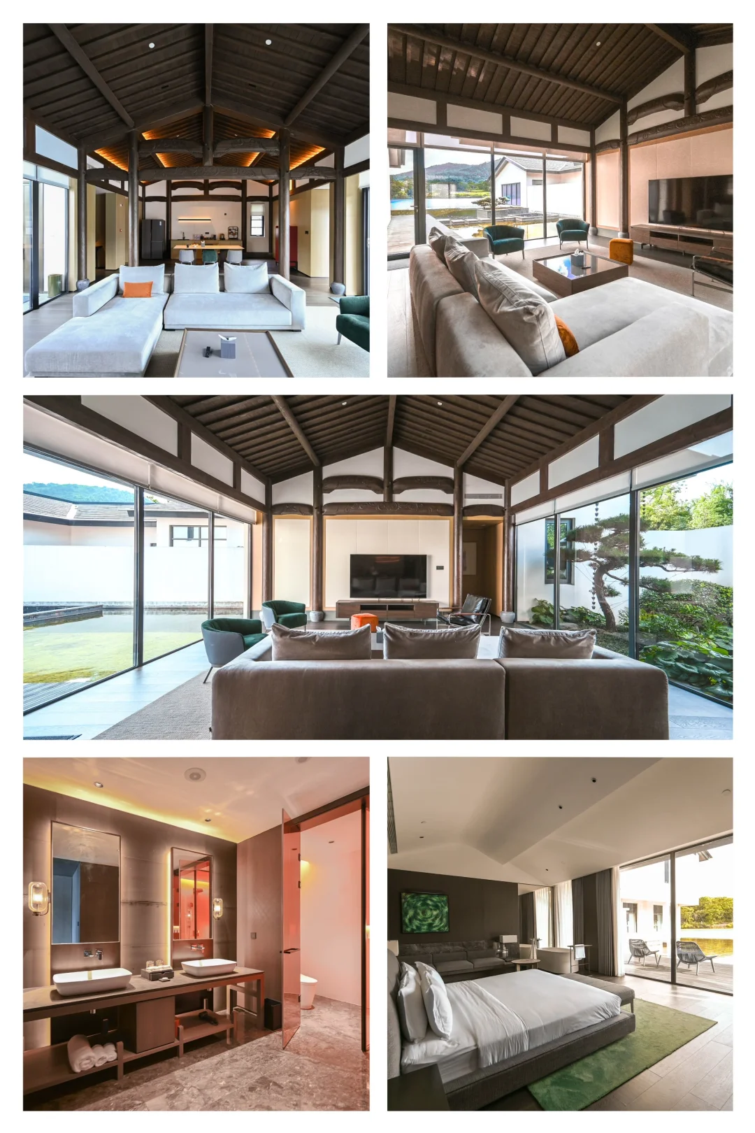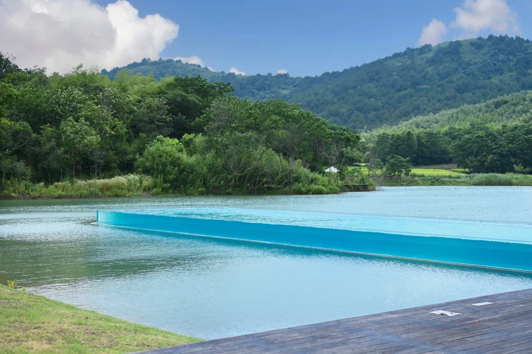 入口门厅处,徽派建筑映入眼帘,白墙黑瓦,古色古香,酒店花了很多心思在设计里。步入悦·酒吧,一抬头鱼儿在游。还有书吧、健身房,儿童乐园。户外无边泳池特别出片,和湖面连成一片。冬天还有室内、室外温泉可以去体验。喜欢喝茶的朋友,就去论道·茶空间。