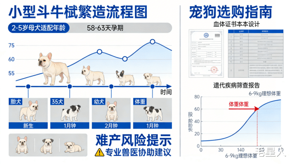 小型斗牛梗繁殖需兼顾品种纯度与母犬健康,核心要点如下: