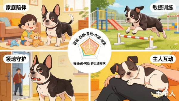 小型斗牛梗虽出身斗犬家族,却拥有“外刚内柔”的性格特质,兼具梗犬的机敏与伴侣犬的亲和,核心特质可概括为: