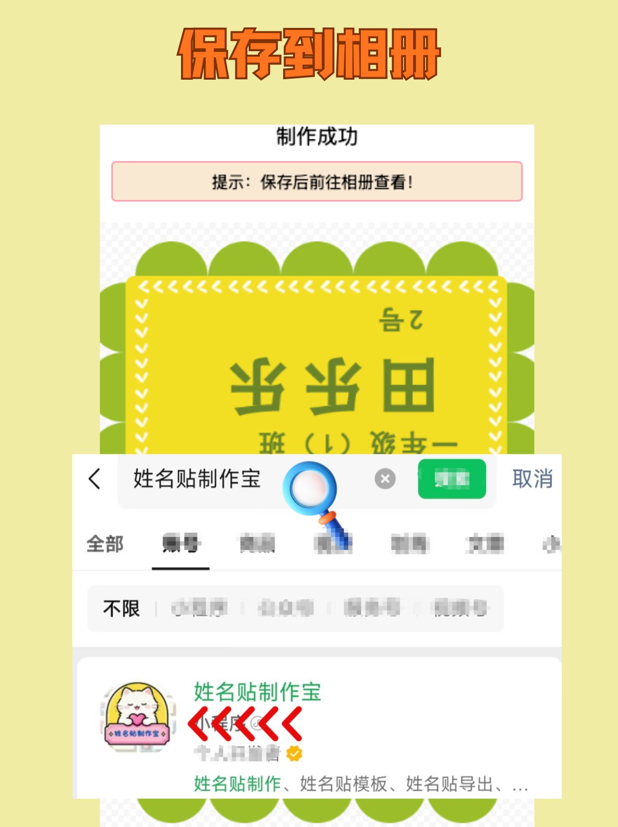 内容确认无误后,点击制作按钮,生成的姓名贴会自动保存到📱相册,后续直接打印就能用。