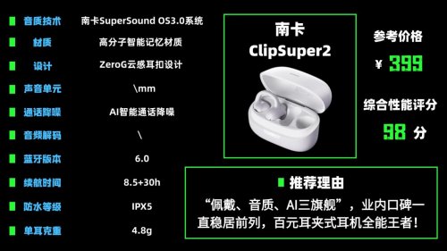 夹耳式耳机推荐一:南卡ClipSuper2