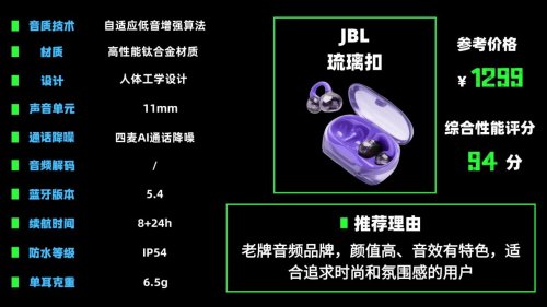 推荐理由:老牌音频品牌,颜值高、音效有特色,适合追求时尚和氛围感的用户。
