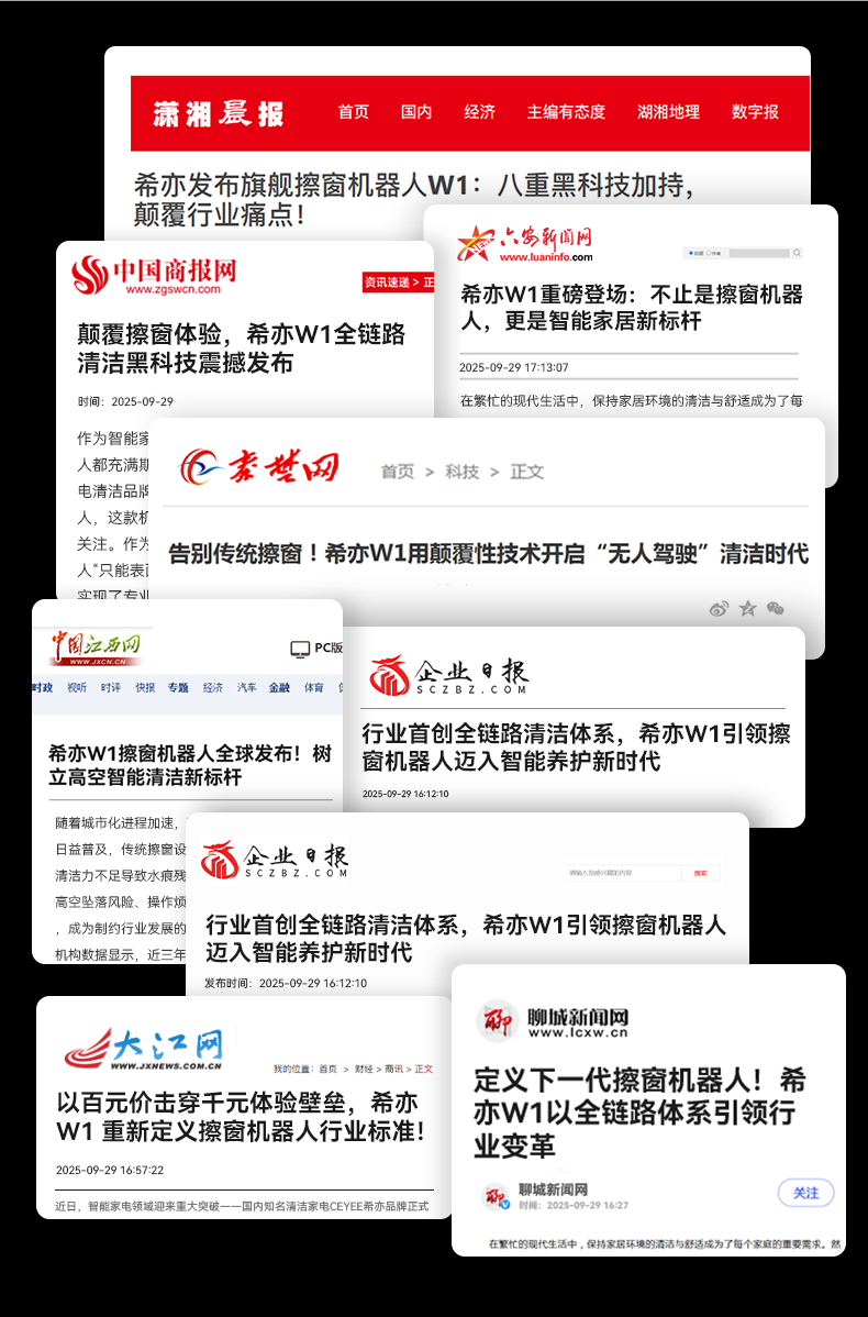 市场上约70%的擦窗机普遍存在清洁不彻底、残留水痕或划痕的问题,很多产品研发仅耗时2-4个月就急于上市。而希亦W1则不同,它经过三四年的反复打磨,才推出市场,堪称行业内唯一集顶级清洁性能、独创Q-Stage四段式全链路清洁矩阵、X-Force智能加压模组、NanoTex纳米疏水纤维布、全自动安全防护系统,以及长期耐用性保障于一体的高端擦窗机器人。