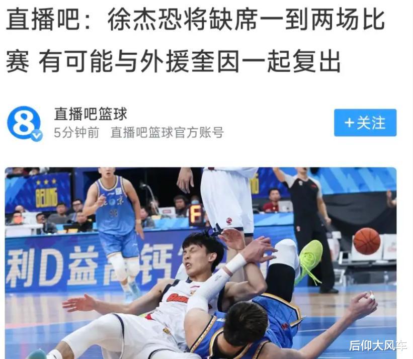 昨晚的比赛徐杰因伤没有上场,赛前据直播吧的相关消息源透露,徐杰有可能需要休息一到两场,他有可能与奎因一起复出。