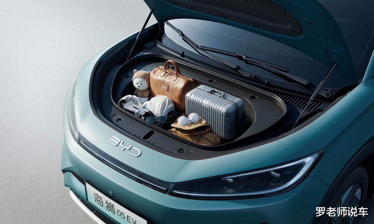 相对比来说,海狮05EV前排空间还不错,后排空间因为受限于轴距,同时因为后备箱预留的空间太大,乘坐舒展空间就相对紧缩了一些,虽然也有前备箱,但110L的前备箱空间,存放物品有限,不过也聊胜于无。