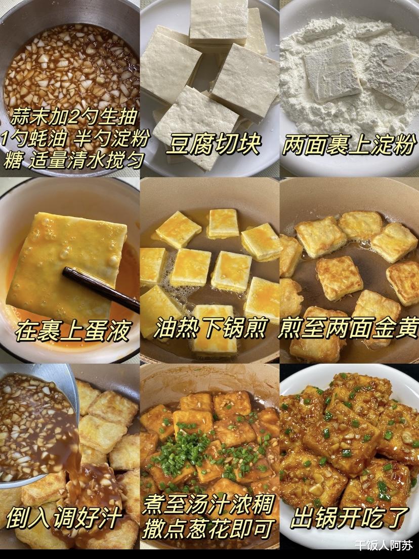 制作时,选豆腐是关键。建议用老豆腐或北豆腐,质地紧实,不易碎。切块后轻轻抖掉多余水分,再裹上一层薄淀粉,这样煎出来的豆腐外酥里嫩,口感更佳。酱汁的调配也很重要,生抽、蚝油、淀粉和少许白糖,再加清水搅拌均匀,煮至浓稠后倒入豆腐,让每一块都吸满汤汁,味道浓郁,回味无穷。