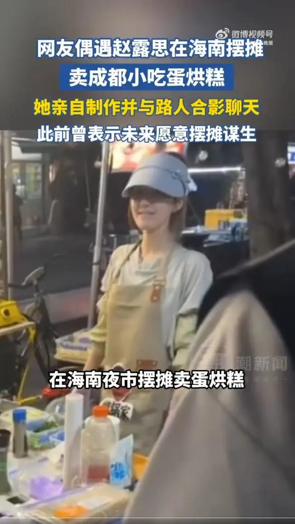 从网友晒出的现场照片和视频来看,赵露思彻底卸下了明星光环,全身心投入到摆摊事业中:她头戴蓝色遮阳帽压得极低,搭配口罩遮去大半脸颊,身上系着普通围裙,手上戴着紫色手套和花纹护袖,从头到脚的装备实用又接地气,把防护做到位的同时,也和夜市里的普通摊主别无二致。起初路人并未认出她,只觉得这位摊主手艺娴熟,蛋烘糕的口感地道,直到有人抬头看清眉眼,才惊觉是赵露思。