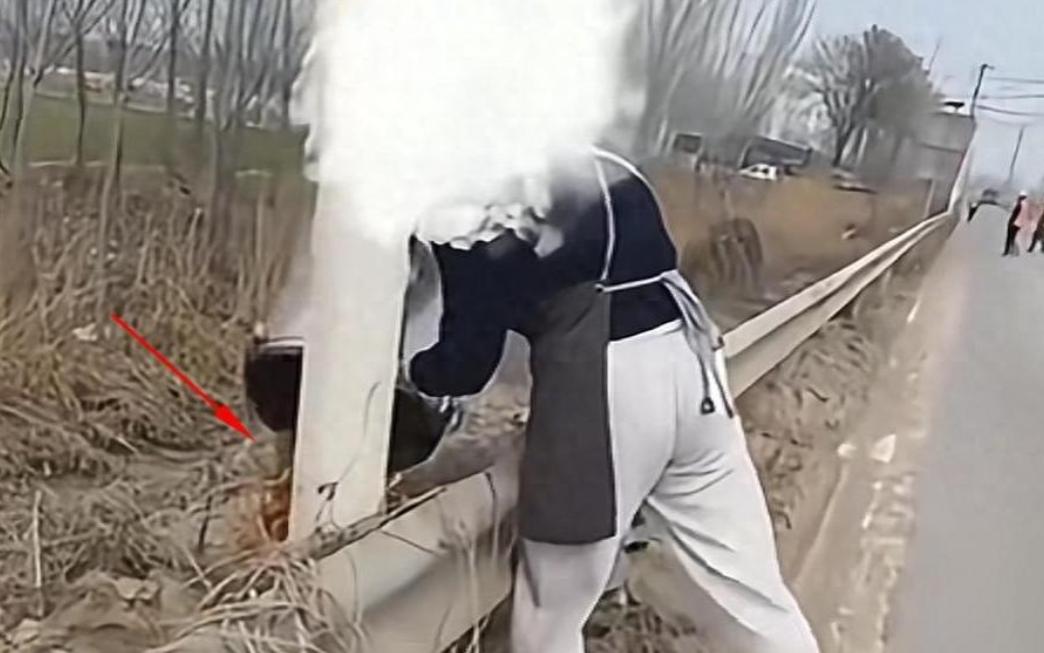 小伙子急得赶紧阻拦,可大姐力气不小,直接搬到路边的杂草丛旁,一把就倒了进去。