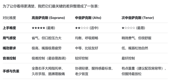 想稳妥不踩坑,全家都能用: 直接选 中音萨克斯。