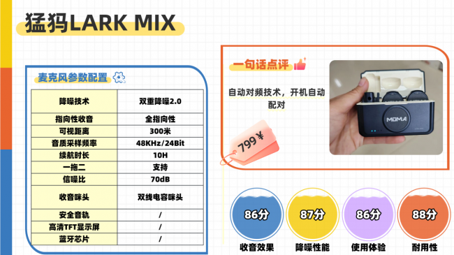 推荐3:猛玛Lark Mix领夹麦克风