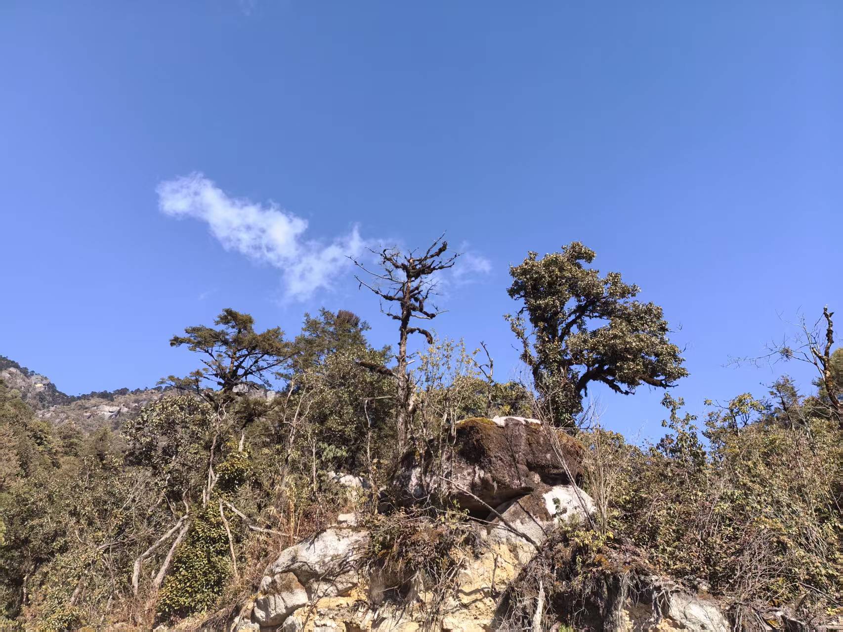 绿树蓝天让我们这些刚从白雪皑皑的北方来的人十分兴奋,没想到走出屋门外面却冷飕飕的,不是北方的寒冷而是凉,这里海拔1500米,这时的温度是在2到15℃左右,早晚凉,中间热,但空气特别好,地面也特别干净,确实是个世外桃源。