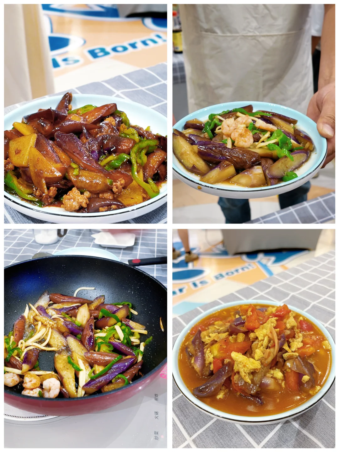 最燃的是第四轮,有3位爸爸👨霸气掌勺,信心满满做出了有自家特色的茄子。有的茄子菜创意十足、有的色味俱佳, 每一道都超有家的味道!本评委现场“偷师”成功,哈哈!