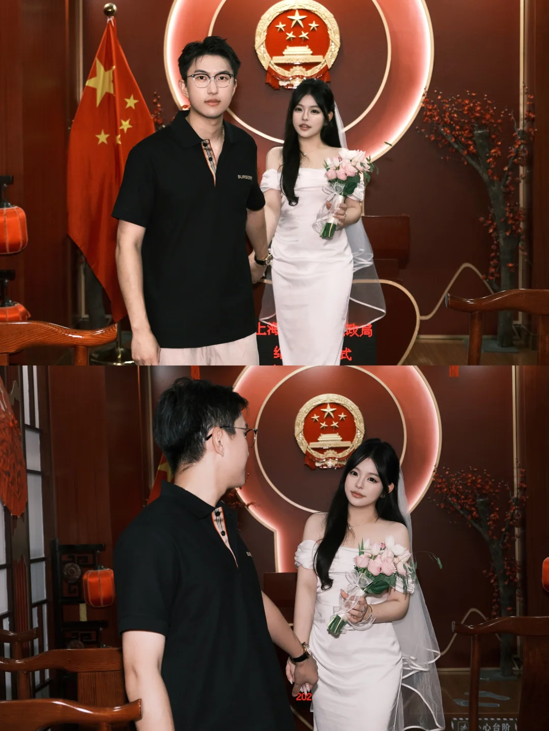 拖了半个月的领证照💍 黄浦区的中式厅拍照好出片📸 还拍了好多花絮照👰♀️🤵