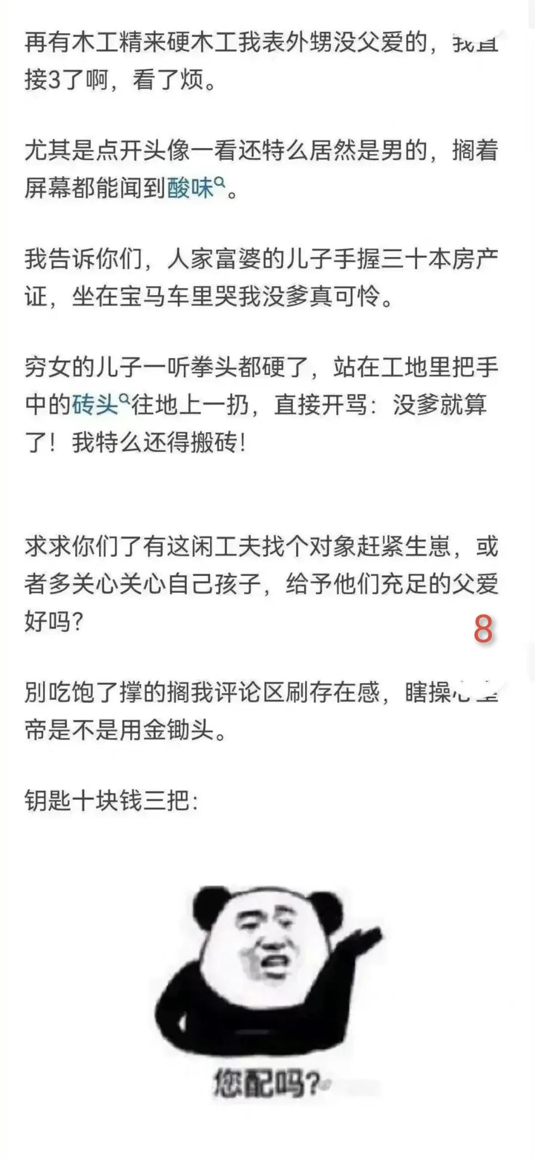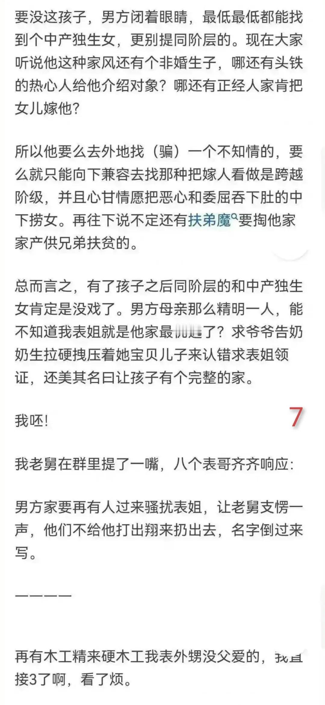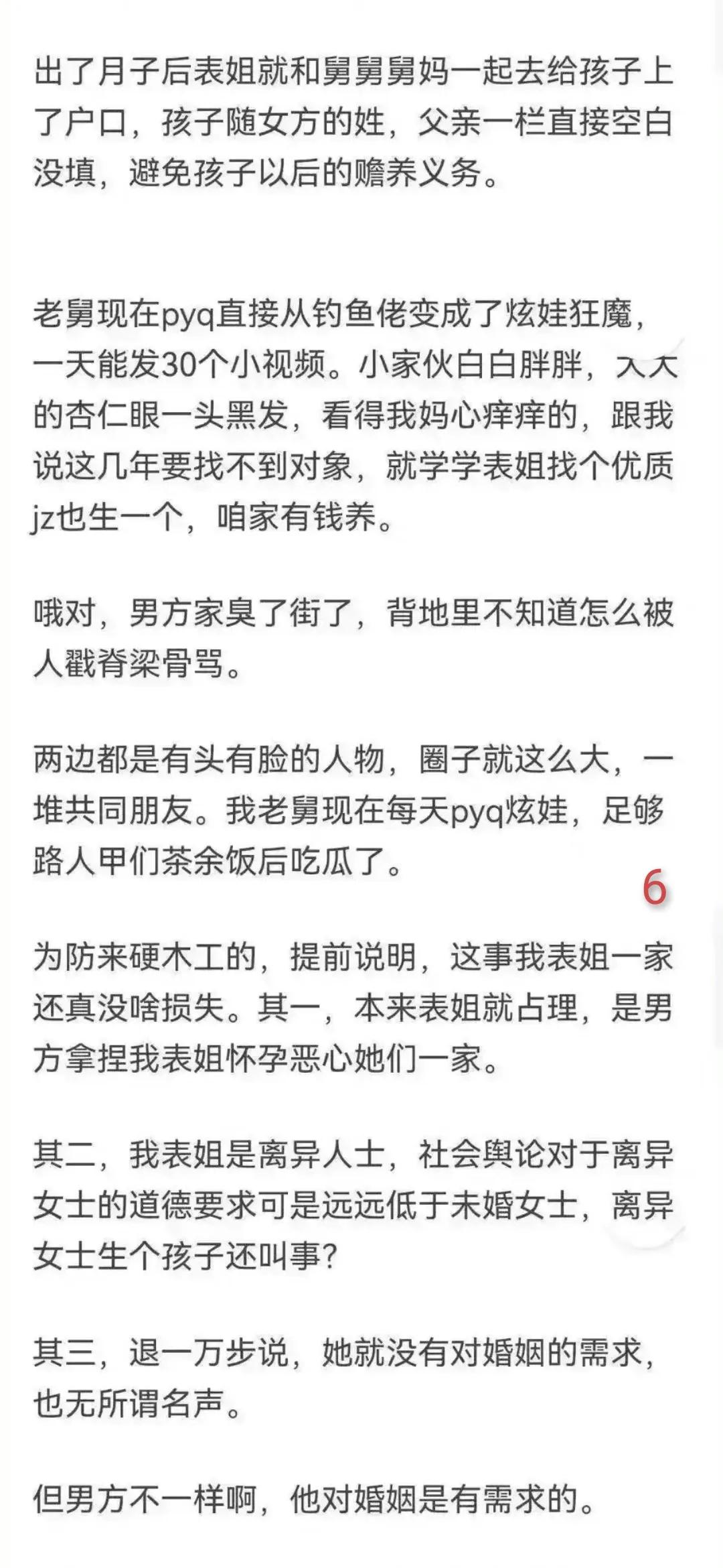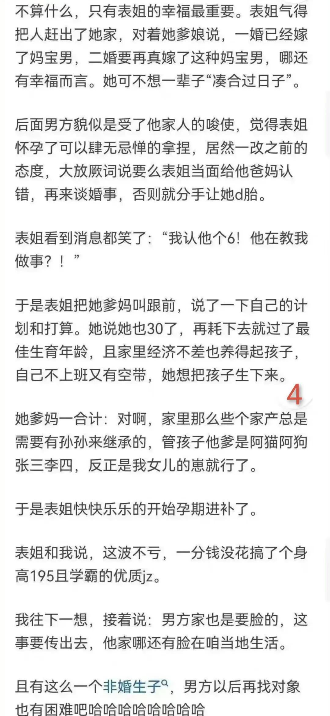 未婚先孕真的会吃亏吗? 以下是去父留子的实例,不要说是观念相对开放的现在,单亲妈妈的存在还是会被许多人诟病。 “丧偶式育儿”情况的出现,让越来越多人对于在日常生活里缺失的另一半充满了怨言,因为这些怨言,没有另一半的那个人开始寻求更好的家庭方式。 而更好的家庭方式,首要条件当然是经济要足够独立,不会被生活中遇到的窘境所困扰。 在保障足够独立的前提下,任何形式的家庭也会越来越多。 就像之前有个新闻里的叶海洋一样,她经济各方面的条件都不错。 因为不想拥有另一个伴侣又想要有自己的孩子,所以她选择用钱去购买异国的胚胎,来生出自己的后代。 确实她的选择方式被许多人所争议,但是她并没有在意流言,还是做了自己的选择。 这种不需要伴侣又有自己孩子的家庭,让许多一直都接受传统婚姻方式的人无法接受,他们认为没有经过婚姻自然培育的孩子,存在缺陷。 实际上她这种方式对于在生活遭受到异性侵害,或者对异性产生恐惧的人有非常大的帮助。 随着时代的革新,不是所有人都可以接受传统婚姻,毕竟老一辈人的传统婚姻上并没有让周围的人有很好的示范作用。 所以“恐婚”“恐育”也随之而来,一方面是对婚姻中存在的不圆满表示恐惧,另一方也是对婚姻中需要承担的责任产生了恐惧。 在不好的婚姻中得到了不好的效果,于是就像题主一样,既然已经没有办法达到想要的婚姻方式,就选择了舍弃。 孩子并不是主要原因,这个孩子只是在不好的遭遇下得到的新生礼物。 我相信很多如果可以拥有美满家庭的人,不会选择“去父留子”,没有人不向往和谐圆满的婚姻家庭,这只是无奈之下的选择。 我是@月木夕夕,对于这件事你有什么看法呢?欢迎评论+点赞+关注!