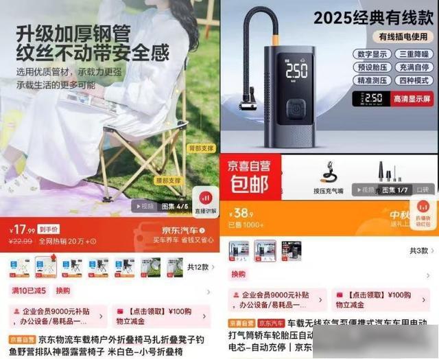除了露营装备,便携实用的辅助装备也能提升周边游体验。京东京喜自营的双层加厚户外折叠椅,可承重150公斤,快速折叠设计让携带、使用更便捷;IHIKER露营推车,承重能力达400斤,轻松胜任装载物资和购物等场景;车载无线充气泵,支持一键预设胎压和自动停机,还配备多种充气转换头。这类产品契合了当前消费者对“轻量化”和“易用性”的需求,近一月来销量激增。