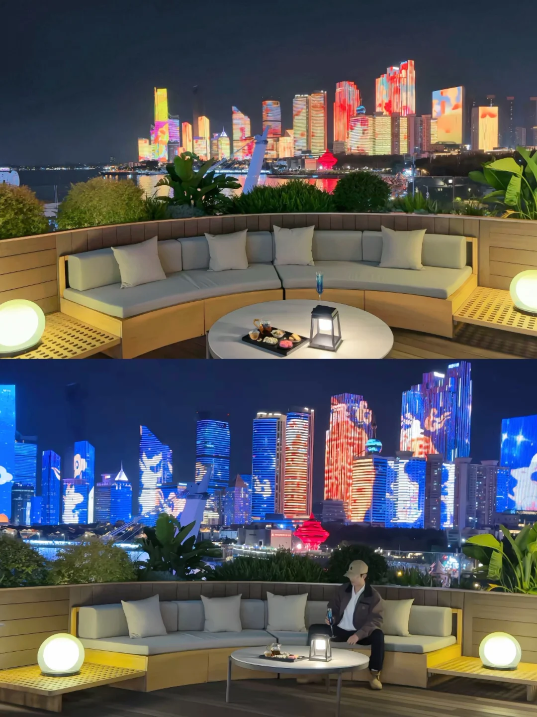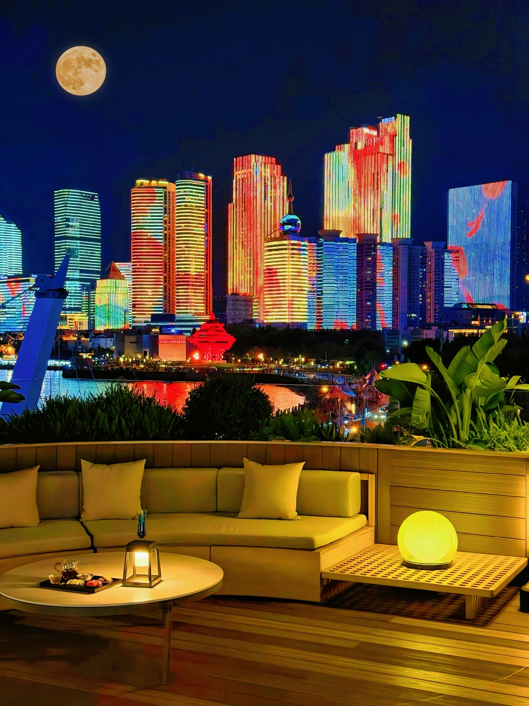 重点推荐海信城市会客厅,TOP级美景+大片级打卡点+灯塔级品牌,这是99%的人都不知道的海信绝美私藏海景。从走进去的那一刻就被舒适和惬意包围,三楼的超大观景露台更是美绝了!将奥帆中心、情人坝、“五月的风”尽收眼底,待到夕阳西下、暮色四合,远处的灯光秀亮起,整个人更是徜徉在氛围感与浪漫的“海洋”,这真的是我来青岛最值得一次发现!