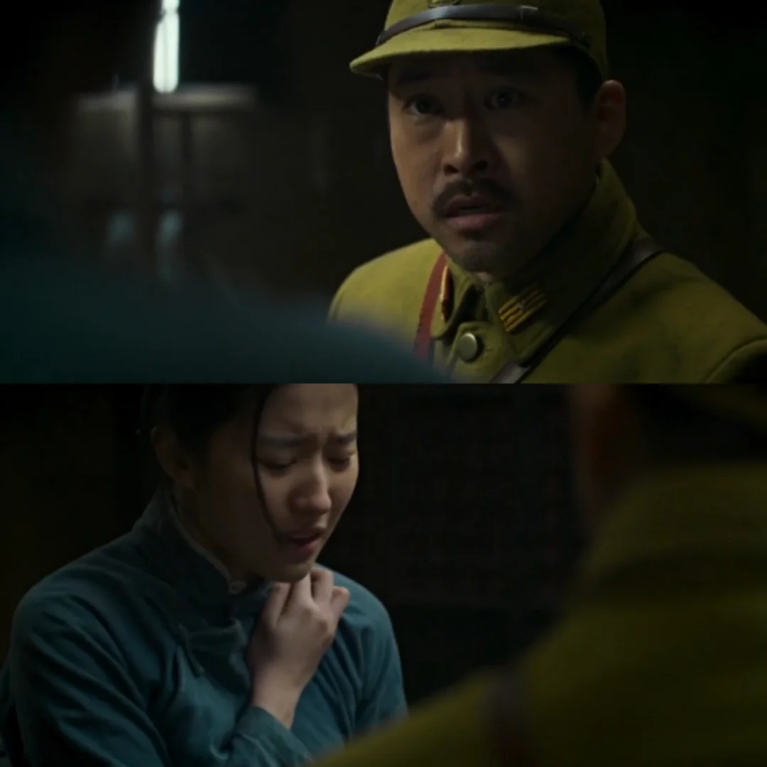 还有一场戏是她被日本军官羞辱,刚开始她还保持着军官遗孀的气节,但是随着日本军官态度的恶劣,她变得害怕,在军官的暴行中瑟瑟发抖,恳求不要这么对她,接着日本军打了她几巴掌,把她压在地上施暴。而后杰克击毙日本军官,血溅在她的脸上,她惊恐地颤抖着。