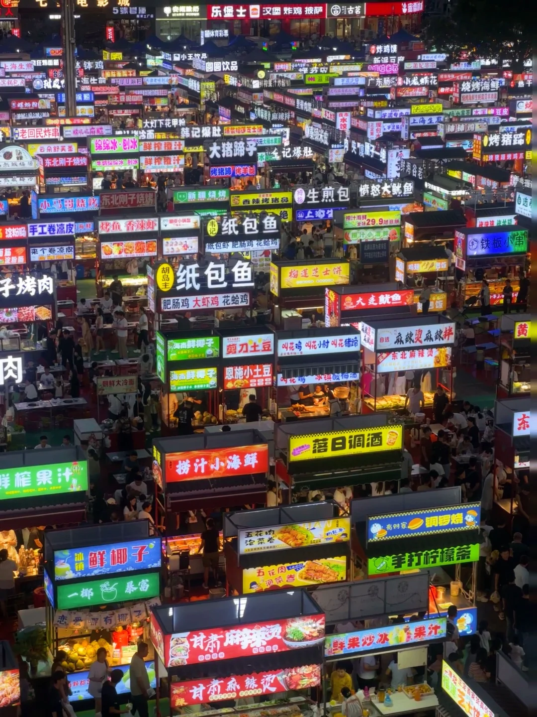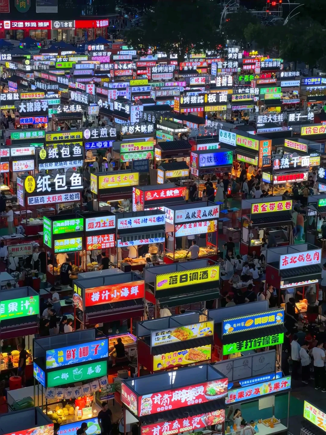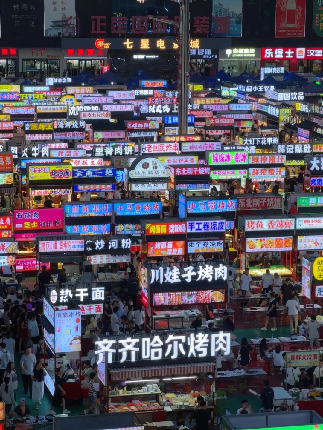 夜色下五颜六色招牌如赛博世界,抓住暑假尾巴去享受夜市美食