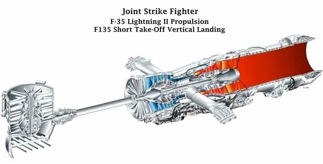 整套系统由F135-PW-600发动机提供核心动力,配合罗尔斯·罗伊斯升力风扇、三轴承旋转喷管、机翼滚转喷管,形成四点推力平衡。