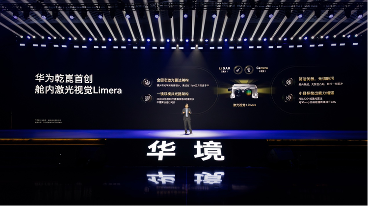 说到与华为深度合作,首先逃不开的话题就是智驾系统。华境S的智驾系统硬件和目前市面上的其它车辆还真有点不一样,因为华境S是首批搭载华为乾崑舱内激光视觉Limera的车型之一,这套系统最大的特点就是没有了激光雷达在车顶的凸起,而是整合进了前风挡之中,从视觉上就让车辆的一体性更好。