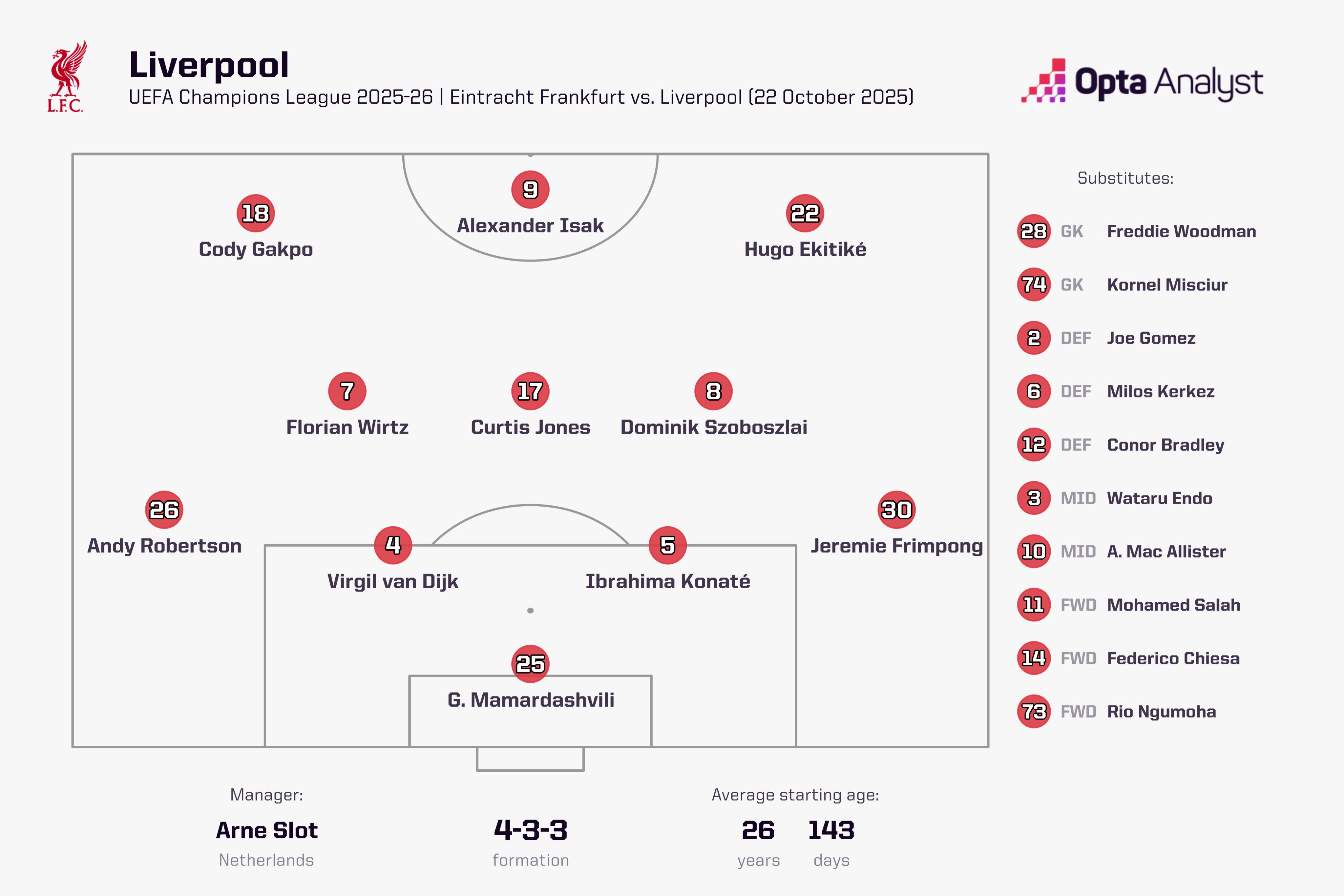 虎扑10月22日讯欧冠联赛阶段第三轮,法兰克福对阵利物浦,萨拉赫本场替补。