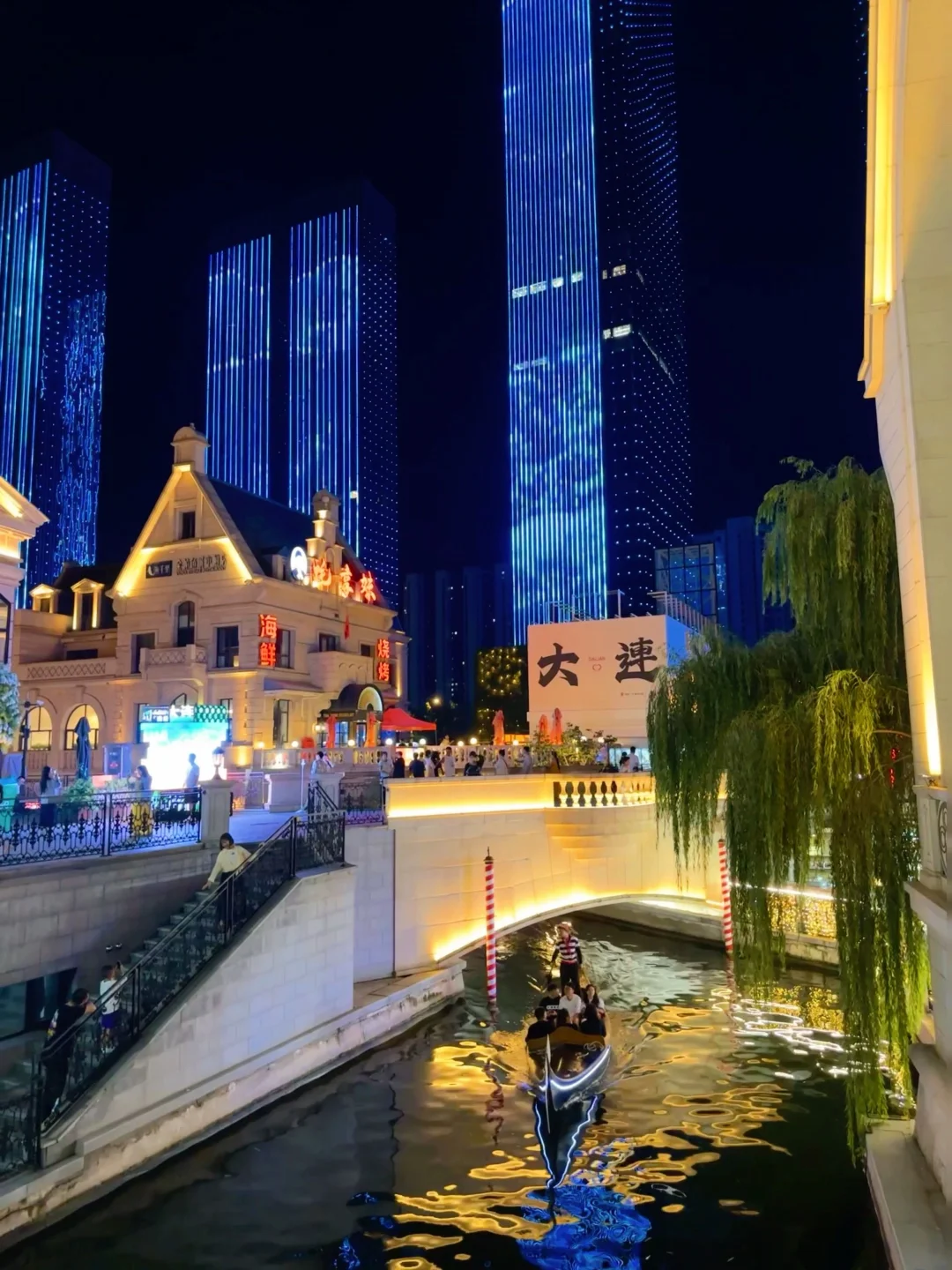 晚上夜景最美,贡多拉船在街区穿行太美了