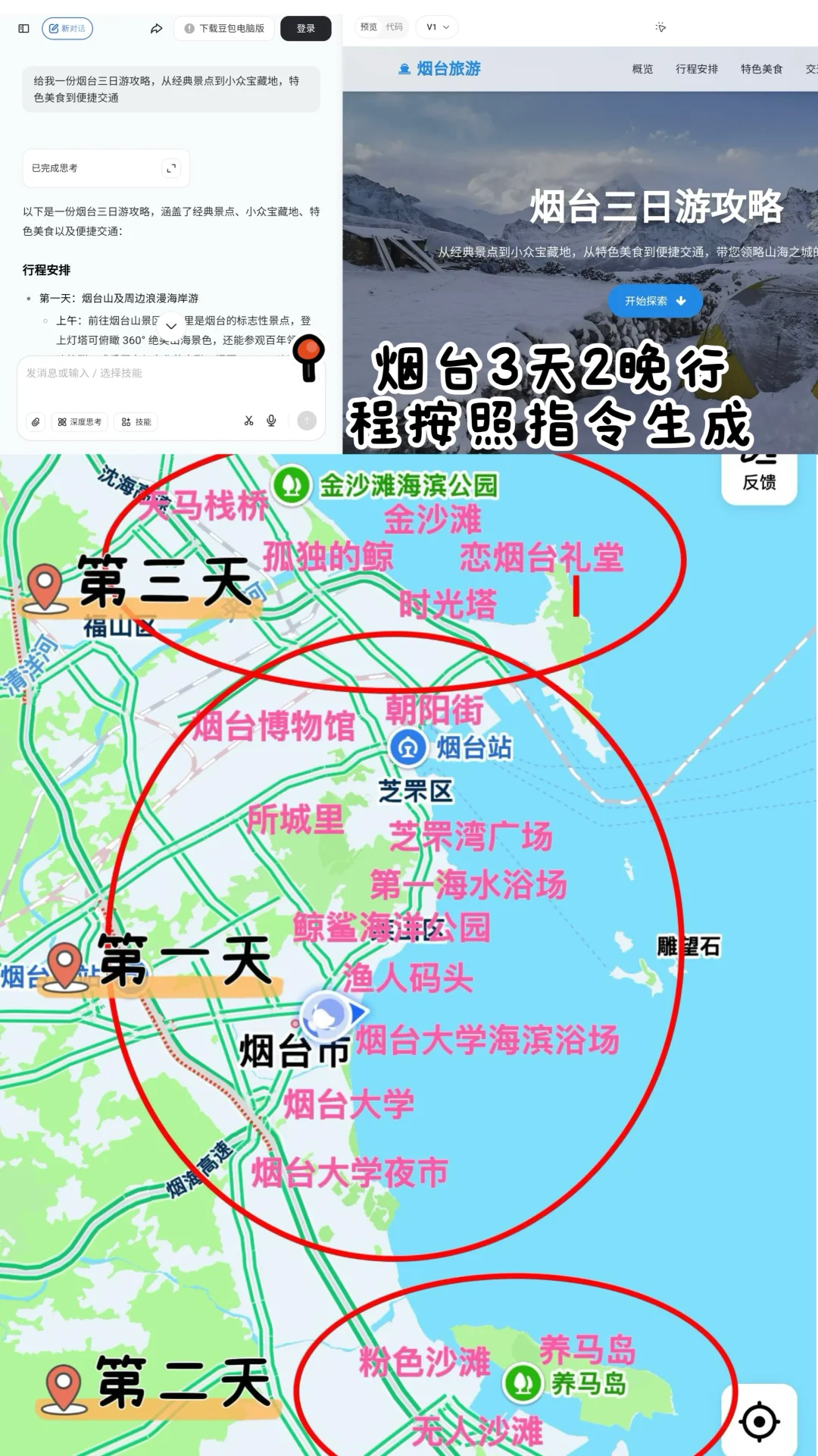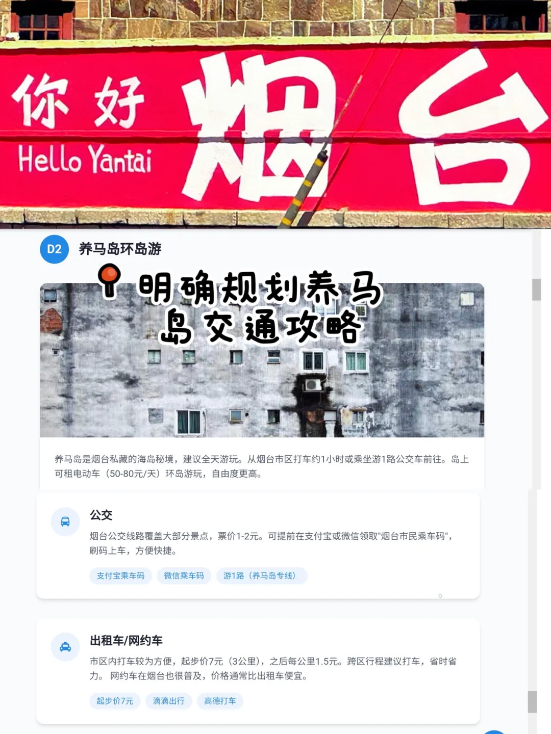 可以提需求,涵盖公共交通,内容偏向于美景拍照,美食➕人文体验可以详细规划每一天