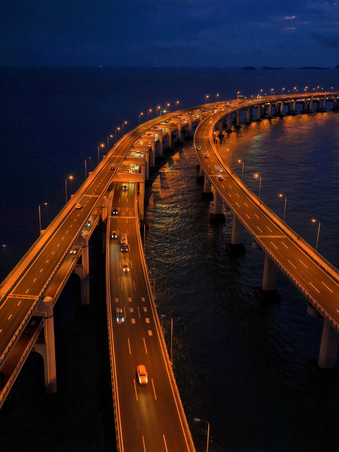 📍跨海大桥:山顶远眺海上大桥蓝天白云,白天晚霞夜景都好看