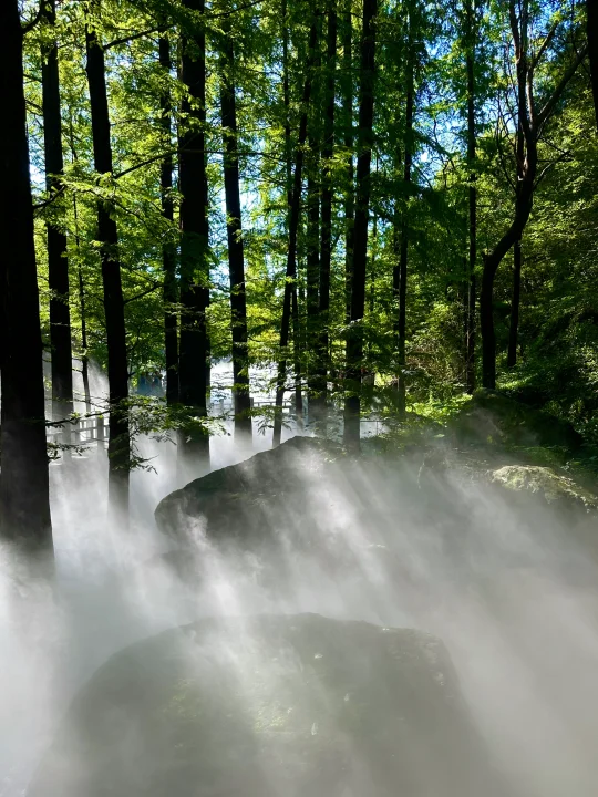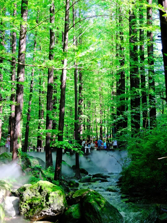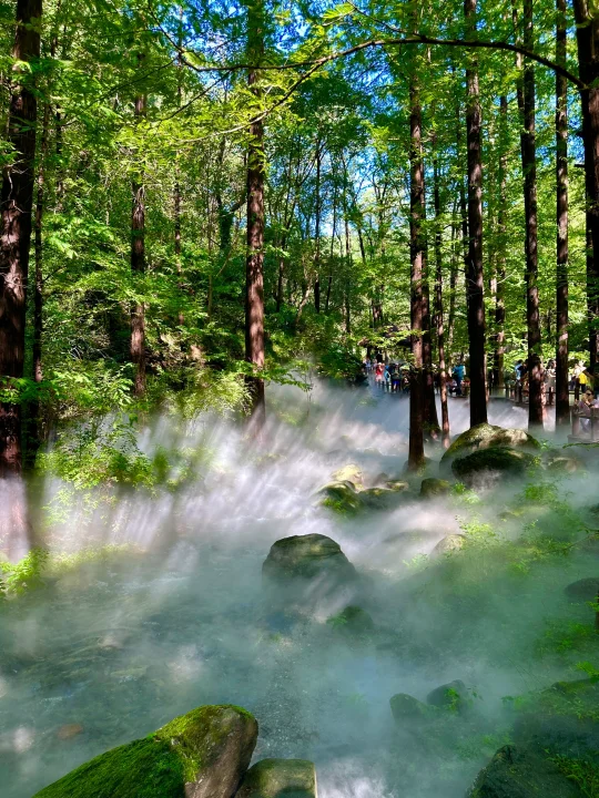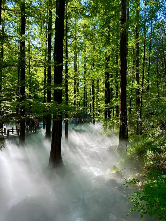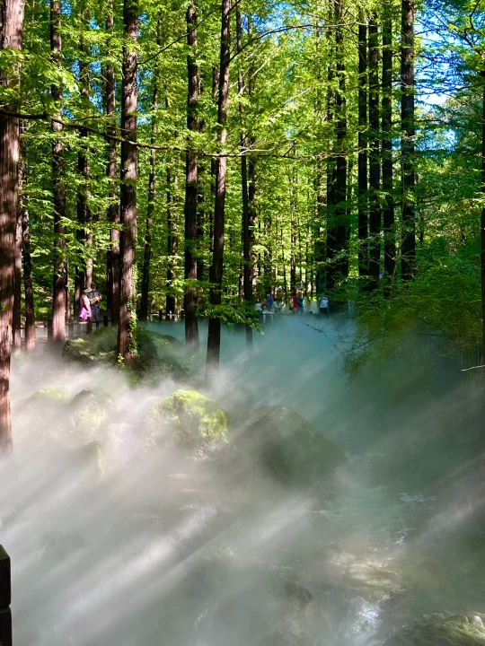 8:50雾气开始喷发,可以很好地促进植物生长,也因此可看到迷雾覆盖森林的迷幻景象