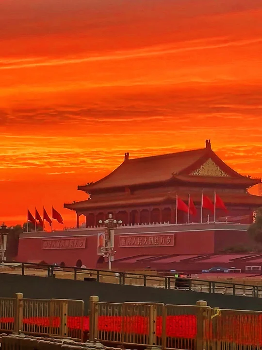 8.30live❗️天安门亮灯晚霞美哭了~实况自取